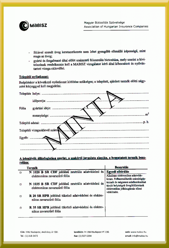 KÜLTÉRI REFLEXIÓS FÓLIÁK